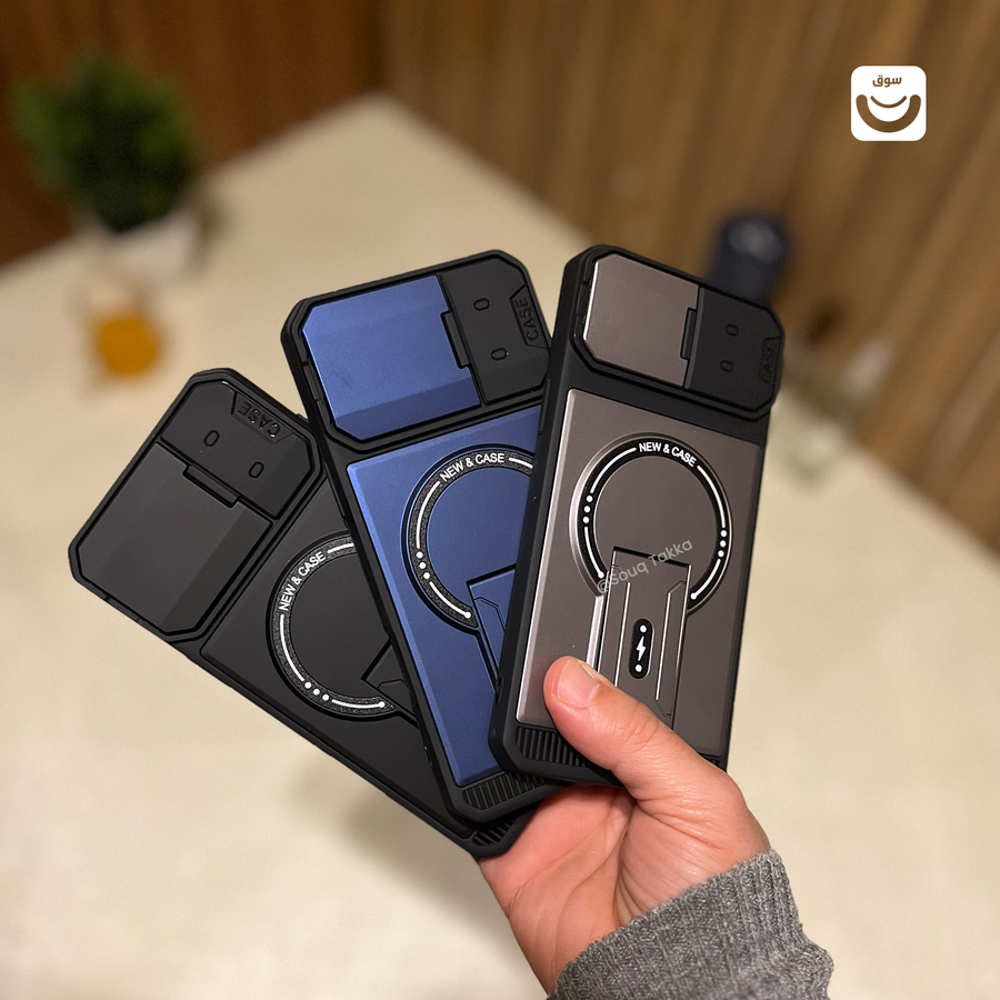 يتميز الجراب بهيكل متين يوفر حماية فائقة ضد الصدمات والخدوش، مع غطاء منزلق لحماية الكاميرا يحافظ على عدسات هاتفك بأمان تام ويمنحك خصوصية إضافية عند الحاجة.