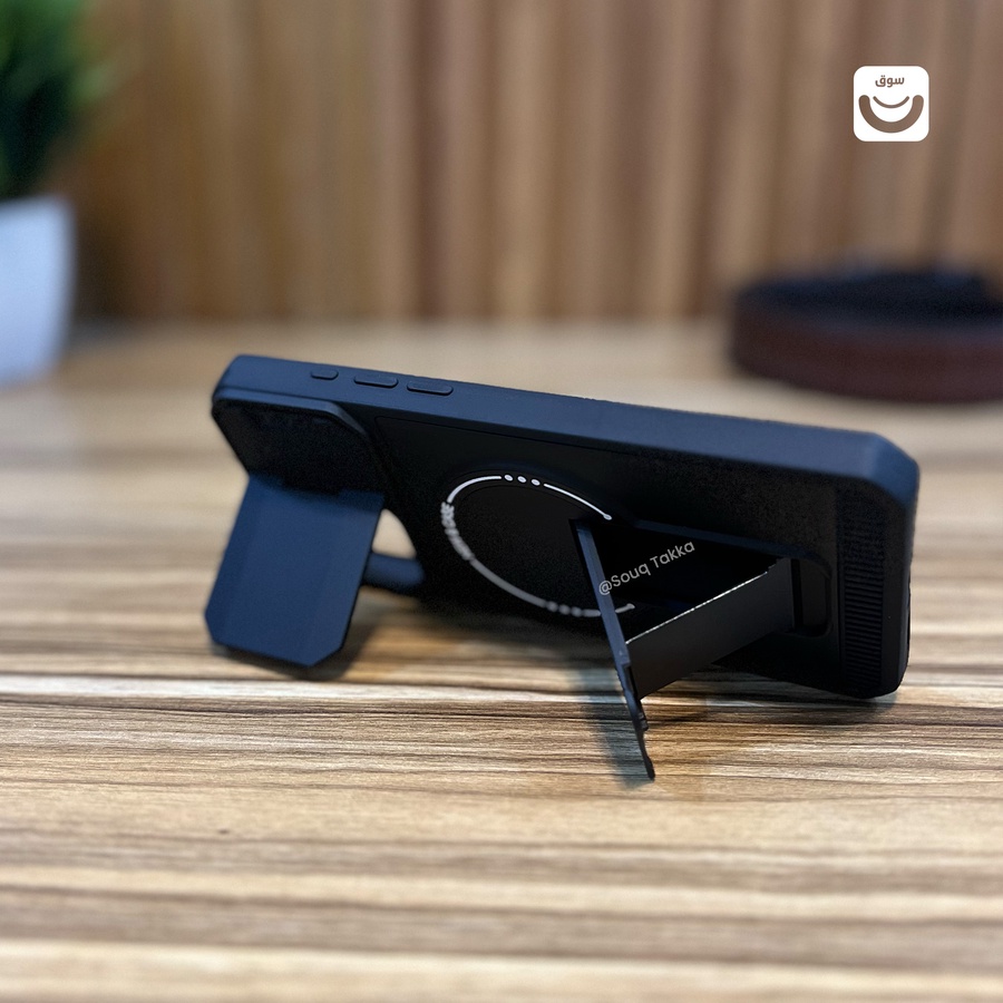 ولمزيد من الراحة، يأتي الجراب مزودًا بـ ستاند مدمج قابل للطي يسمح لك بمشاهدة الفيديوهات أو إجراء مكالمات الفيديو دون الحاجة لحمل الهاتف.