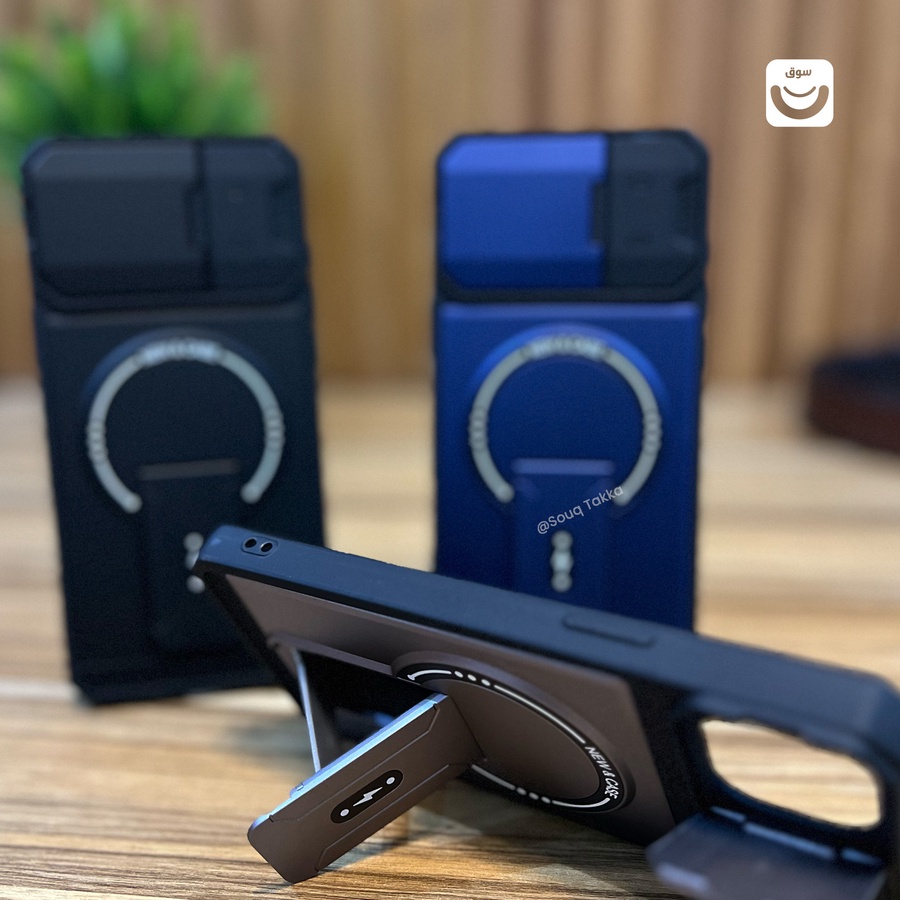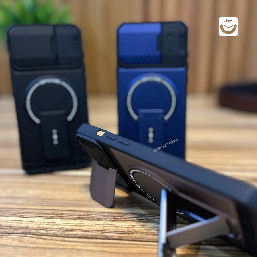 يتميز الجراب بهيكل متين يوفر حماية فائقة ضد الصدمات والخدوش، مع غطاء منزلق لحماية الكاميرا يحافظ على عدسات هاتفك بأمان تام ويمنحك خصوصية إضافية عند الحاجة.