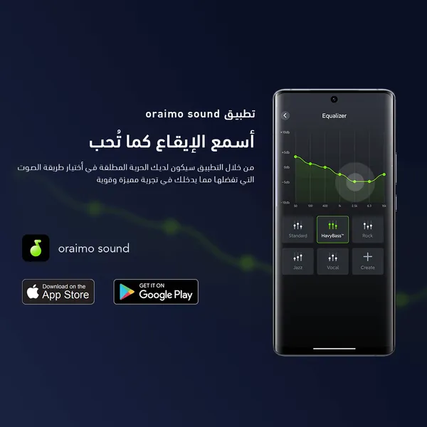 توفر تقنية الصوت المكاني من oraimo تجربة استماع غامرة بفضل توسيع مجال الصوت. اكتشف الصوت الثوري مع تطبيق oraimo Sound.