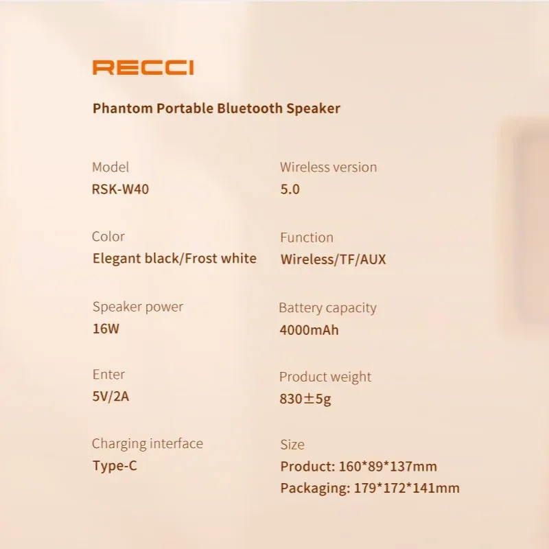 ج.محوّل أي مكان لأجواء ترفيهية مميزة مع Recci Phantom Wireless RGB Speaker RSK-W40، سماعة لاسلكية تجمع بين الصوت الواضح والتصميم العصري بإضاءة RGB جذابة.