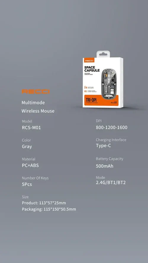 Recci RCS-M01 هو الخيار المثالي لمن يبحث عن ماوس لاسلكي عملي بتصميم مختلف وأداء يعتمد عليه.